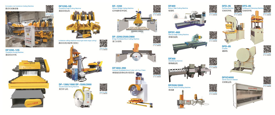 泉州達(dá)鋒機(jī)械有限公司坐落于世界石都一一中國(guó) · 水頭,是一家集研發(fā)設(shè)計(jì)、生產(chǎn)制造、銷售服務(wù)于一體的專業(yè)石材建材機(jī)械綜合服務(wù)型企業(yè)。產(chǎn)品涵蓋自動(dòng)路沿石流水線設(shè)備、石材切割和磨光設(shè)備、自保溫砌塊設(shè)備等工業(yè)智能機(jī)械設(shè)備及金剛石工具輔料等。本著精益求精的原則,憑借不斷積累的制造技術(shù)和經(jīng)驗(yàn),達(dá)鋒機(jī)械逐漸成為石材機(jī)械設(shè)備生產(chǎn)制造業(yè)的領(lǐng)頭羊。